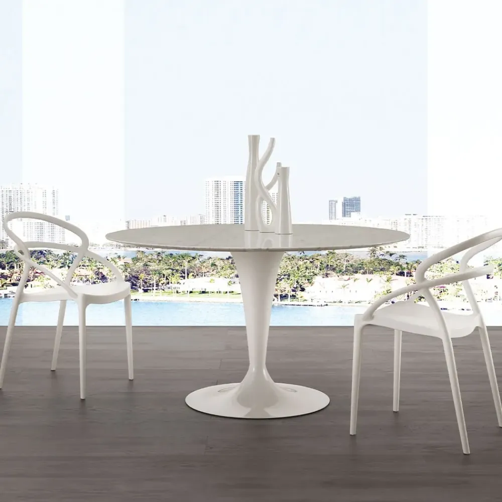 - Forma rotondi: La forma rotonda del tavolo Island marble permette di ottimizzare lo spazio e favorisce la convivialità durante i pasti.