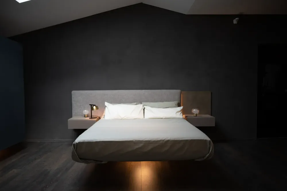 - Questo letto Matrimoniale Fluttua non prevede nessun materasso: non per questo dovrai rinunciarvi, difatti potrai riceverne su richiesta uno e riceverlo con un supplemento.