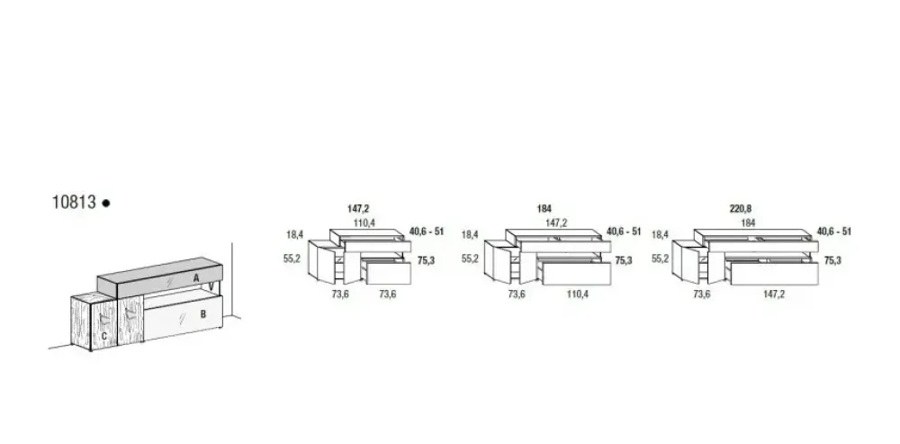 Questo mobile a prezzo ribassato misura da 101 a 150 cm in larghezza.