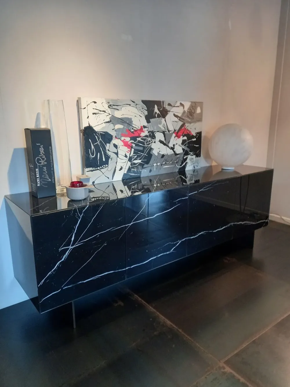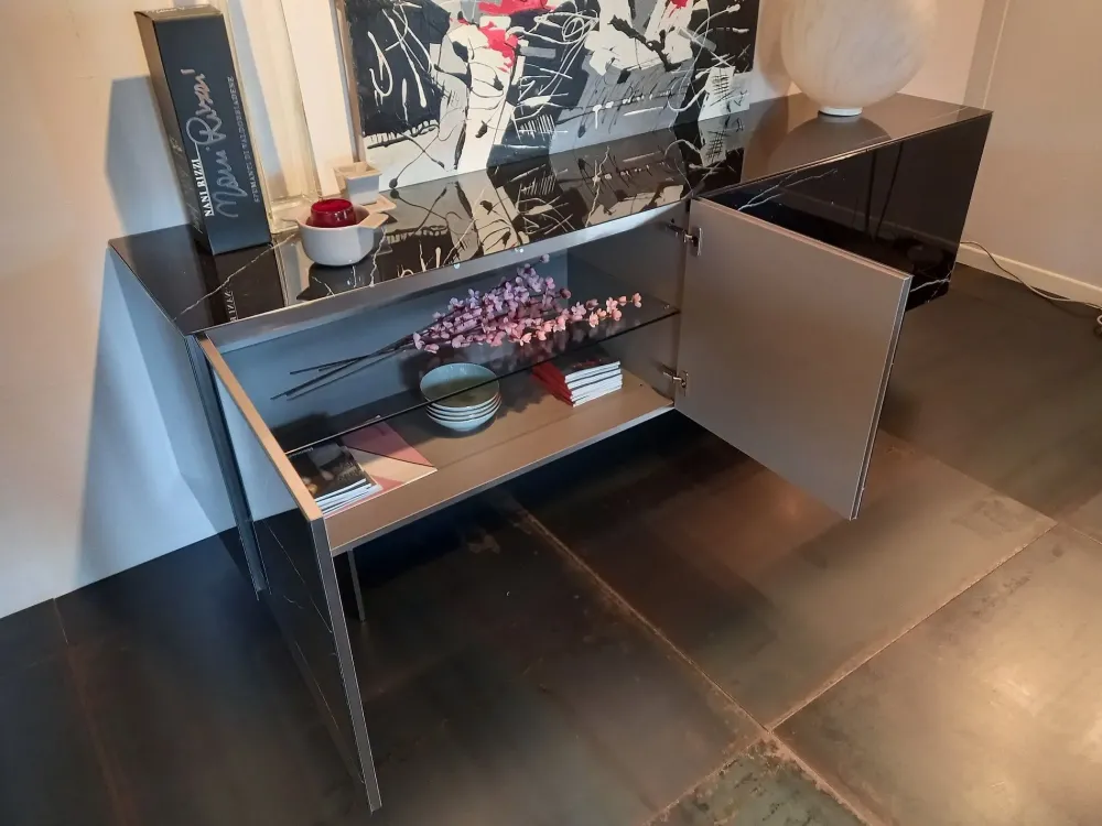 Materia è il nuovo modello di Madia firmato Lago, caratterizzata dal “rivestimento” in vetro. La madia ha infatti top, fianchi e ante in vetro lucido xglass finitura Marquina nero,che esaltano la matericità dell’effetto marmo.
