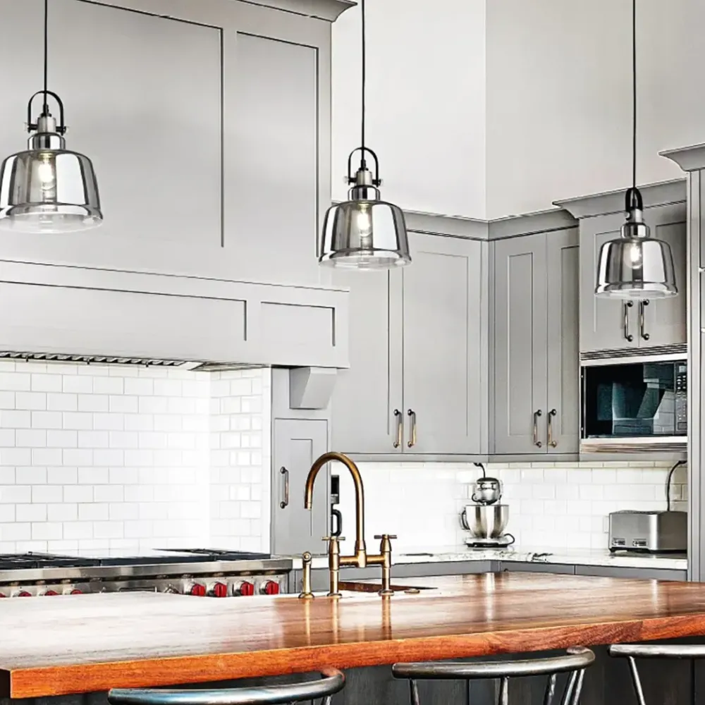 6840 FU di Perenz รจ una sospensione dal design vintage ed elegante. Una lampada da soffitto curata fin nei mini dettagli. Ideale per illuminare piani cottura, piani lavoro, penisole, corridoi e tanto altro. Cavo regolabile in altezza.