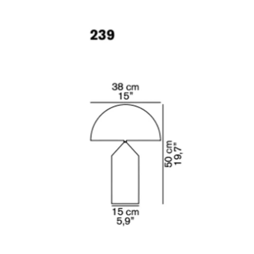 Ideata nel 1977 da Vico Magistretti, Atollo è diventata negli anni l’archetipo della lampada da tavolo, vincendo il Compasso d’Oro nel 1979, e rivoluzionando completamente il modo di immaginare il classico abat-jour. Colore : oro satinato.