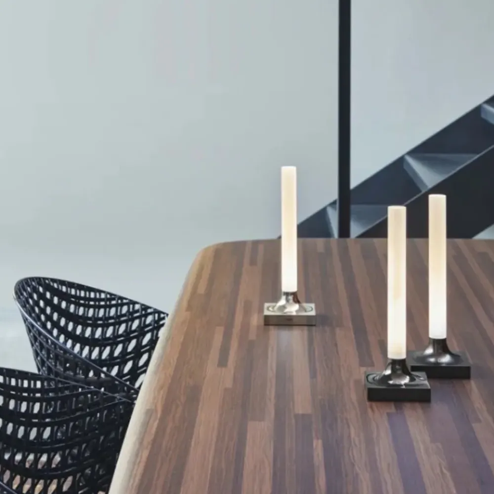 - Visto che gli ambienti domestici occorre che siano organizzati con una certa logica, in modo che i pezzi di arredo, tra cui anche l’illuminazione, organizzino al meglio lo spazio senza essere d’ingombro, il marchio ha ideato un’infinità di modelli di lampade, da terra e abat-jour, a sospensione nonché paretali; il modello qui presente è un magnifico esempio di lampada da tavolo firmata dal marchio.