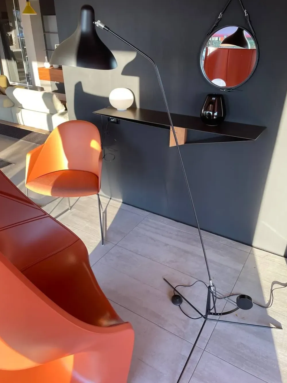 - Visto che gli ambienti domestici occorre che siano organizzati con una peculiare logica, cosicché i pezzi di arredo, tra cui anche l’illuminazione, ottimizzino lo spazio senza risultare d’intralcio, il marchio ha ideato una grande varietà di modelli di lampade, piantane e da tavolo, a sospensione nonché a parete; il modello qui presente è un bellissimo esempio di lampada da terra firmata dal marchio.