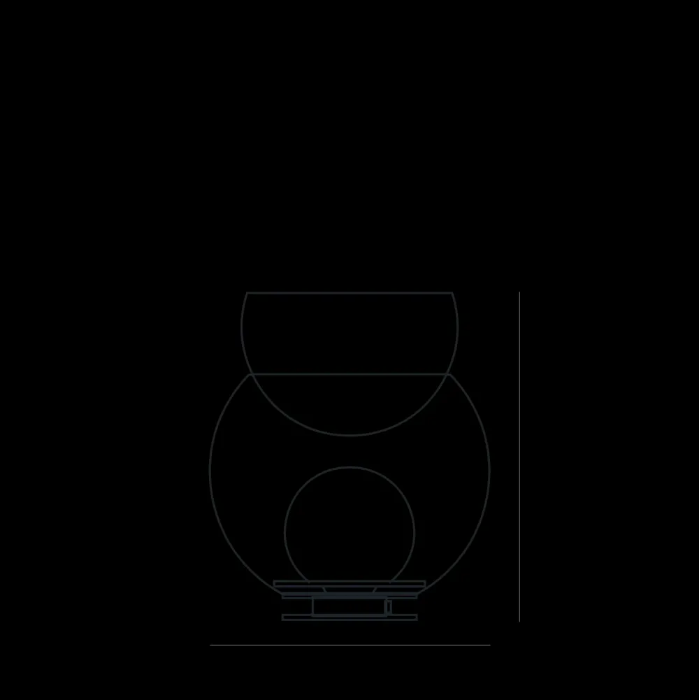 Ibrido tra un vaso e una lampada, Giova segna l’esordio di Gae Aulenti nel campo dell’illuminazione d’autore. Disponibile in due dimensioni, è una vera e propria scultura luminosa. Su una base in metallo è posizionato un globo trasparente che include la sfera interna, che alloggia la sorgente luminosa. Al di sopra, appoggiata, una coppa in vetro soffiato pelugoso (pieno di bolle d’aria irregolari) è a tutti gli effetti, un vaso portafiori.
