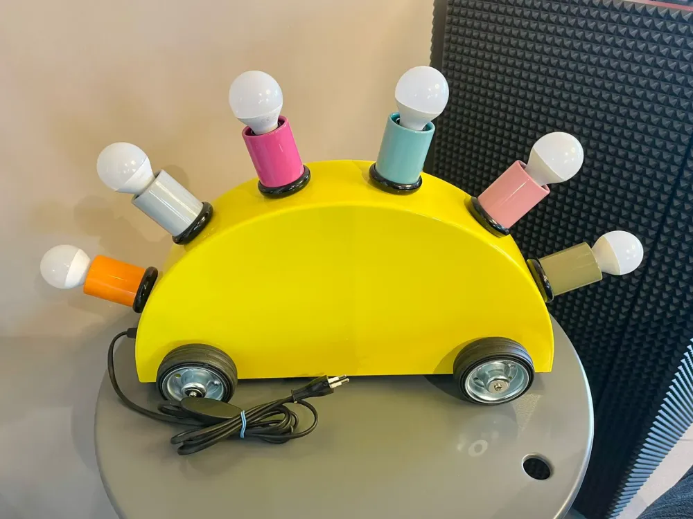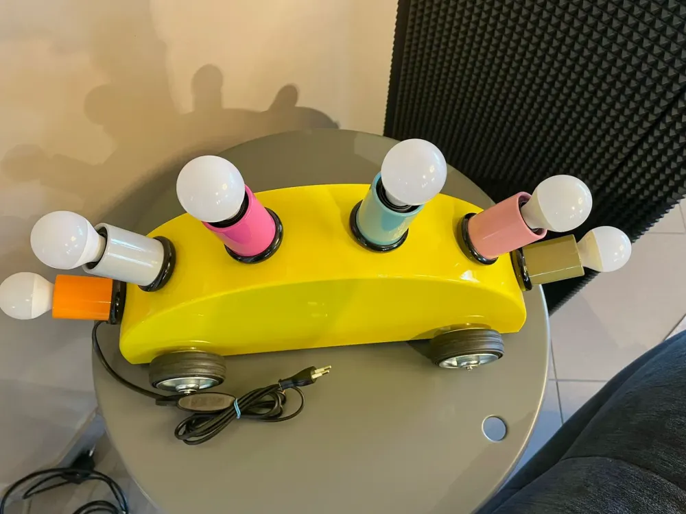 Lampada da terra o da tavolo Memphis Milano modello Super in vetroresina. Designer Martine Bedin nel 1981. Misure: L 45, H 30 cm.