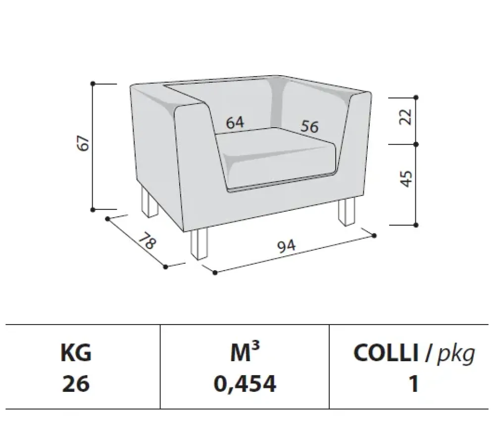 H bracciolo: 22cm. H seduta da terra: 45cm