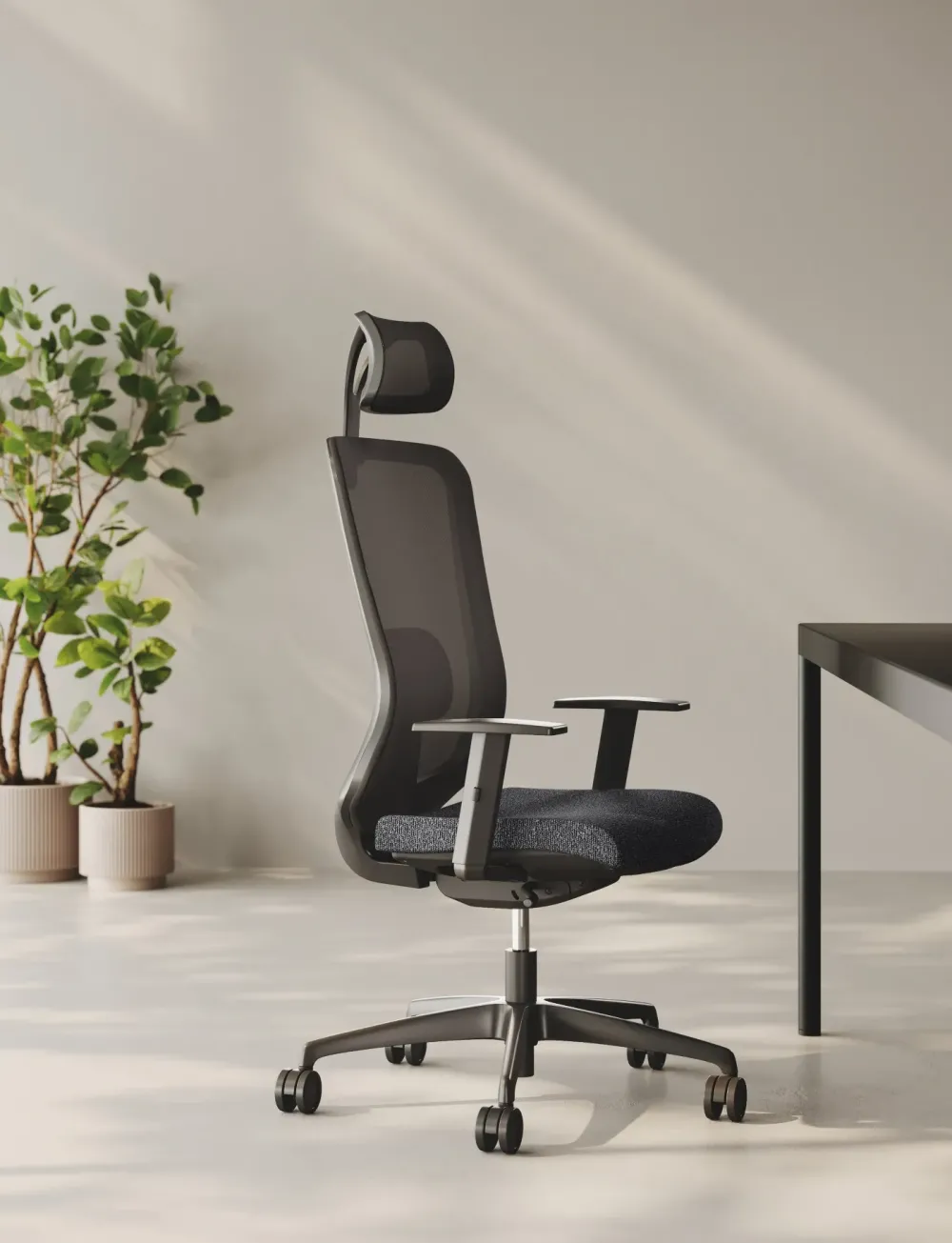 POLTRONA OPERATIVA COMFORT con schienale in rete e poggiatesta