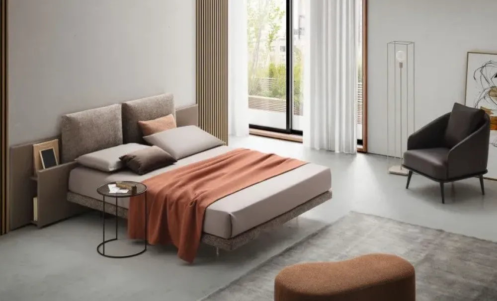 in tessuto sfoderabile giroletto e cuscinatura testata