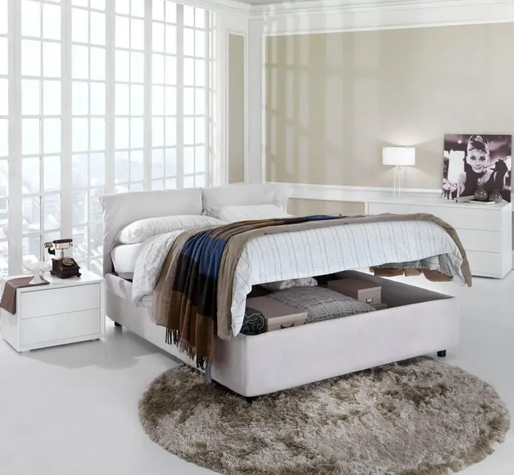 Le ditte che operano nel settore dell’arredo per la camera da letto, quindi anche la produzione Artigianale, propongono svariate versioni di letti capaci di adattarsi alle esigenze pratiche individuali: che tu voglia un letto con giroletto, con contenitore, con cassettoni o a scomparsa, sarà semplice a trovare ciò di cui hai bisogno; Emily è un perfetto esempio di letto con contenitore.