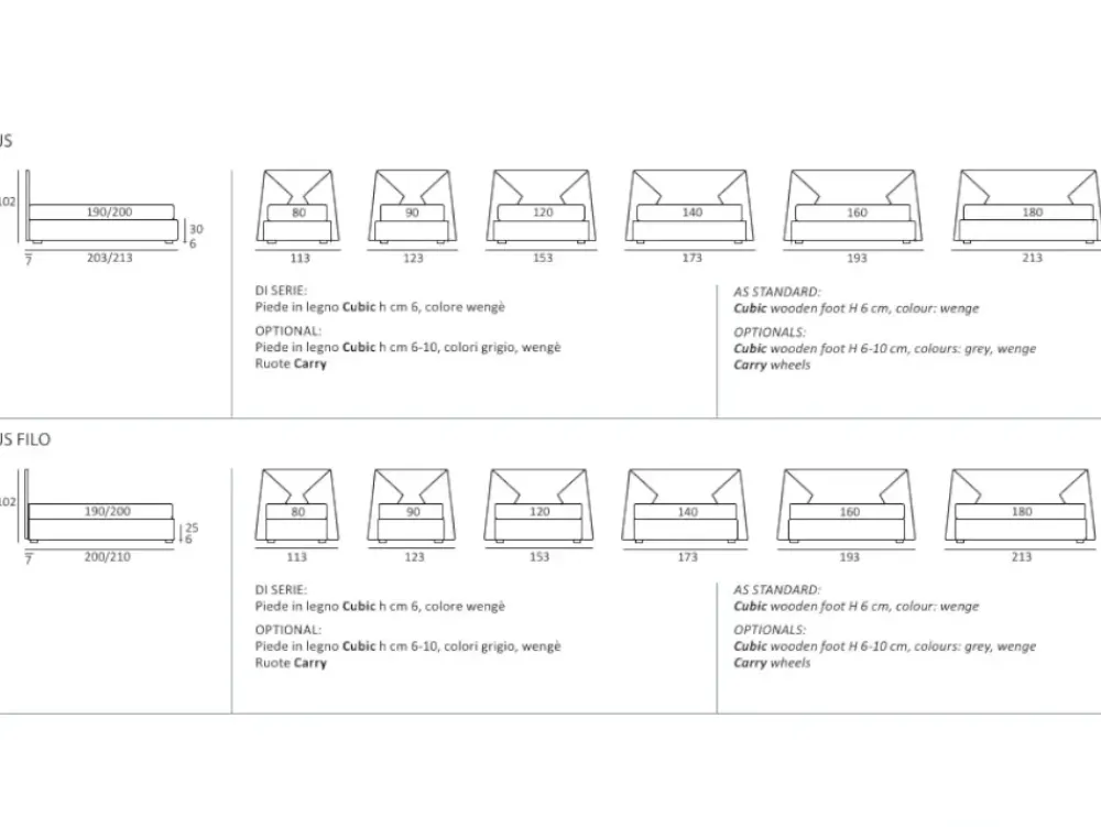 - Per configurazione di misure, piedi o rivestimenti di categoria differente quotazione a richiesta.