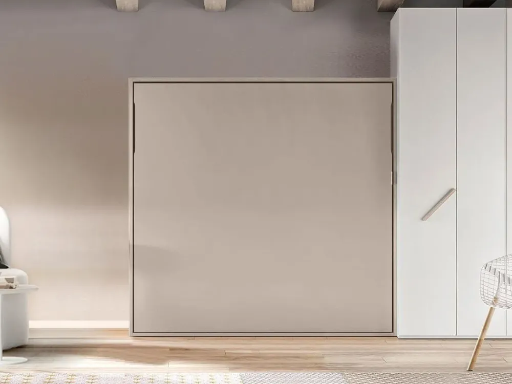 Scegli questo conveniente e pratico Letto a scomparsa matrimoniale, finitura Tortora, risponderà a ogni tua esigenza di spazio e ordine!