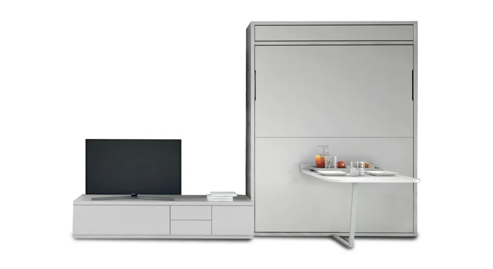 - Tra i diversi modelli di letti della firma, Composizione letto/tavolo/soggiorno fa parte della serie di arredi che si rifanno a un criterio di stile ben preciso, ovvero lo stile moderni.