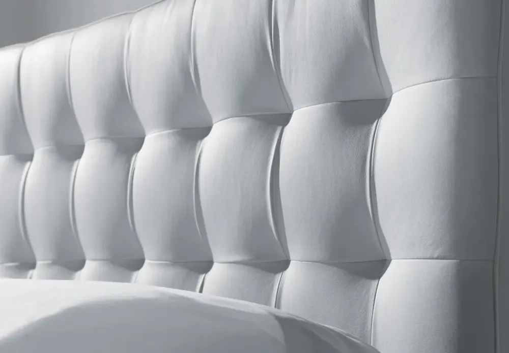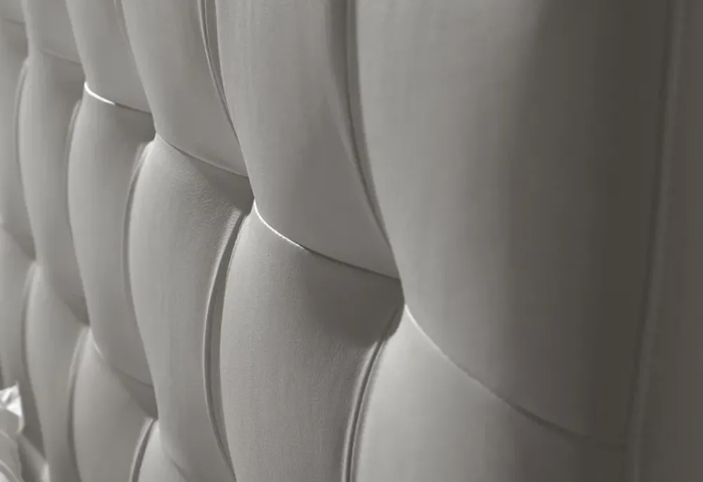 Il rivestimento esterno della testata, non sfoderabile, è disponibile in tessuto o ecopelle.