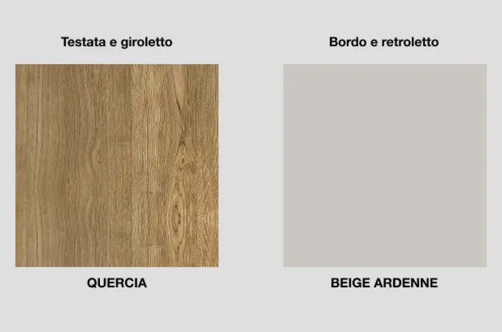 Finitura Quercia con bordo e retro laccato opaco beige ardenne