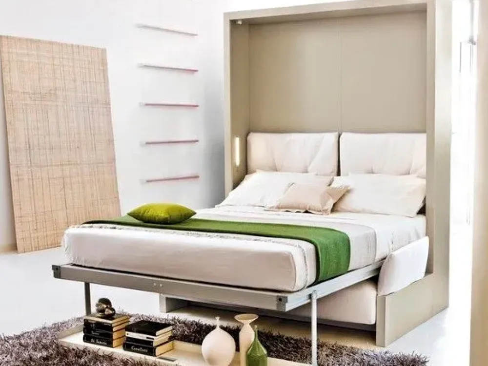 - Le aziende che operano nel settore dell’arredo per la zona notte, quindi anche la produzione Clei, propongono diverse tipologie di letti apaci di adattarsi alle necessità pratiche personali: che tu voglia un letto completo di giroletto, con vano contenitore, con cassetti o a scomparsa, non sarà complicato a trovare ciò di cui necessiti; Nuovoliola’ 10 è un perfetto esempio di letto a scomparsa.