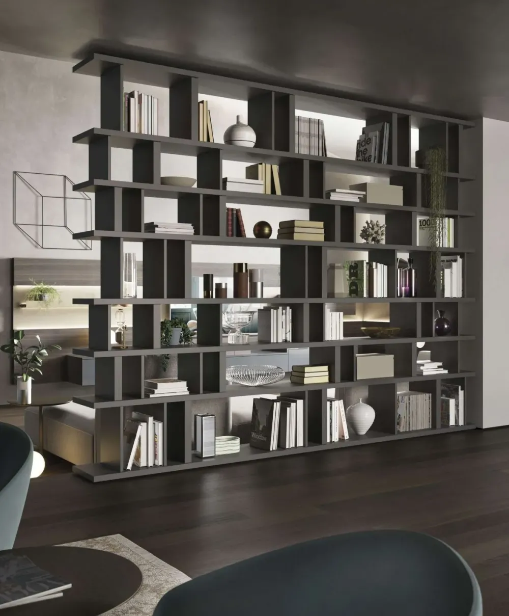 I mobili e complementi per il living consentono di impreziosire lo spazio dando vita a peculiari atmosfere: se desideri un soggiorno design, la libreria nell’immagine fa al caso tuo