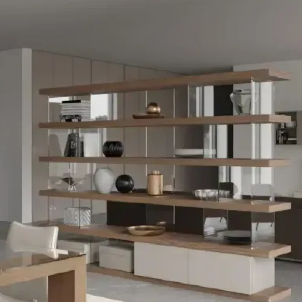 Mobili libreria- divisori doubleface di ” LINEA IN ARREDAMENTI ” dal design esclusivo che si inserisce nell’ambiente della zona giorno separando ogni cosa con armonia, uno stile che ben si adatta ad arredi classici. moderni, stile, rustici, ecc. dando un tocco personale e unico a tutto l’arredo con il vetro trasparente che da luce a tutto l’ambiente. Di seguito alcune proposte che mostrano tutto il mobile nella sua bellezza. Della stessa collezione sono disponibili: – soggiorni completi, pareti attrezzate – tavoli, tavolini, sedie, divani – credenze, madie, librerie E’ possibile modificare: – finiture laccate con colori diversi Scheda informativa del prodotto di qualità “MADE IN ITALY” – struttura in legno impiallacciato con lastra di legno – laccatura opaco SETASIL antigraffio
