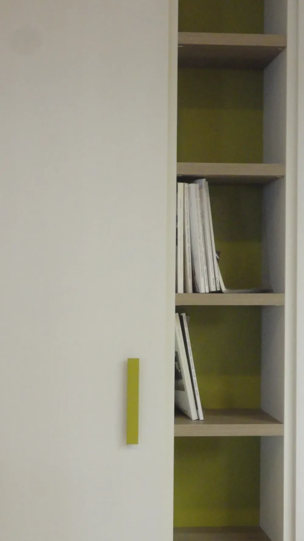 La libreria, ha la struttura e le ante in nobilitato olmo bianco.