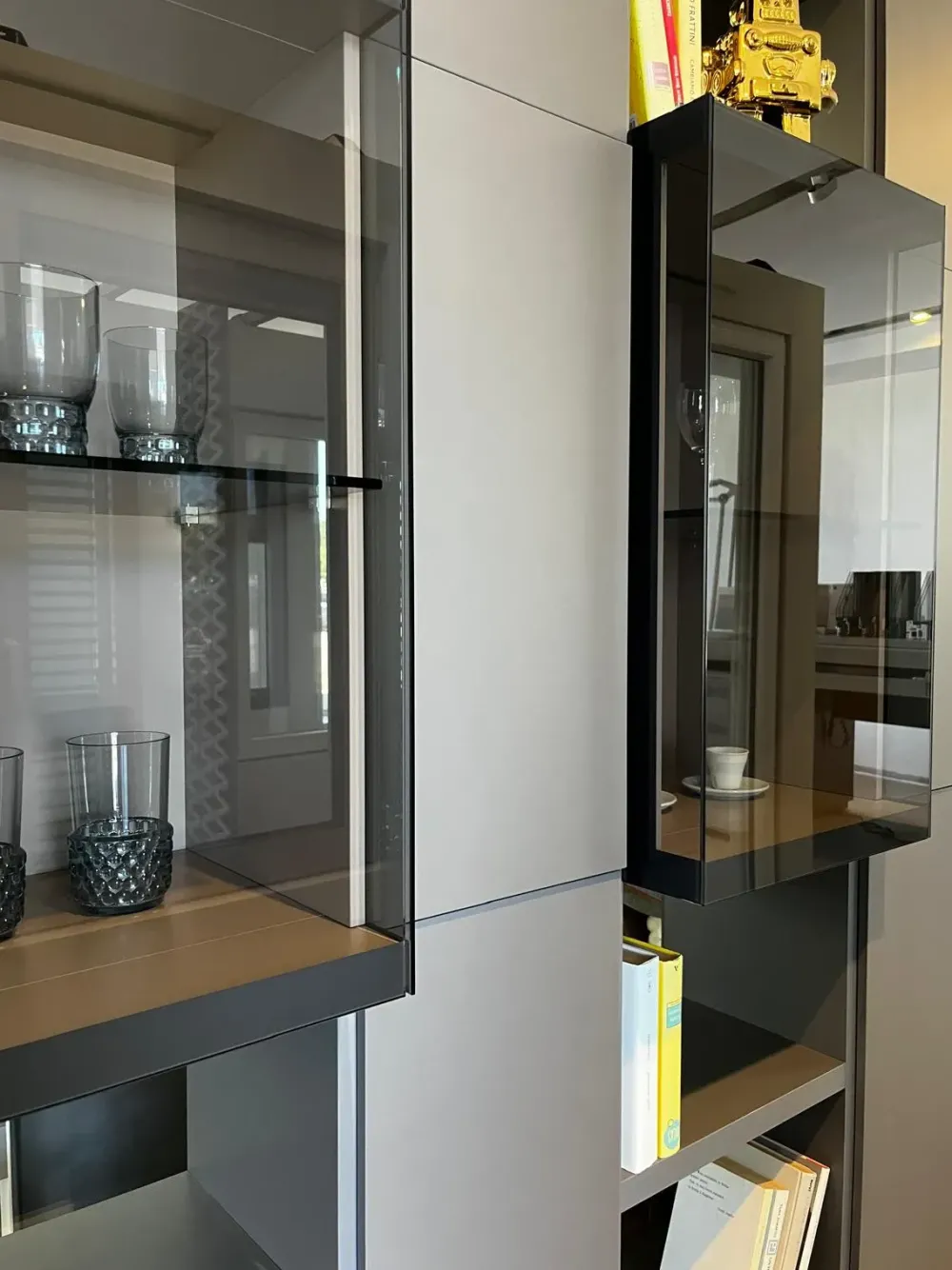 - 2 frontali in vetro trasparente grigio, che alleggeriscono visivamente la composizione