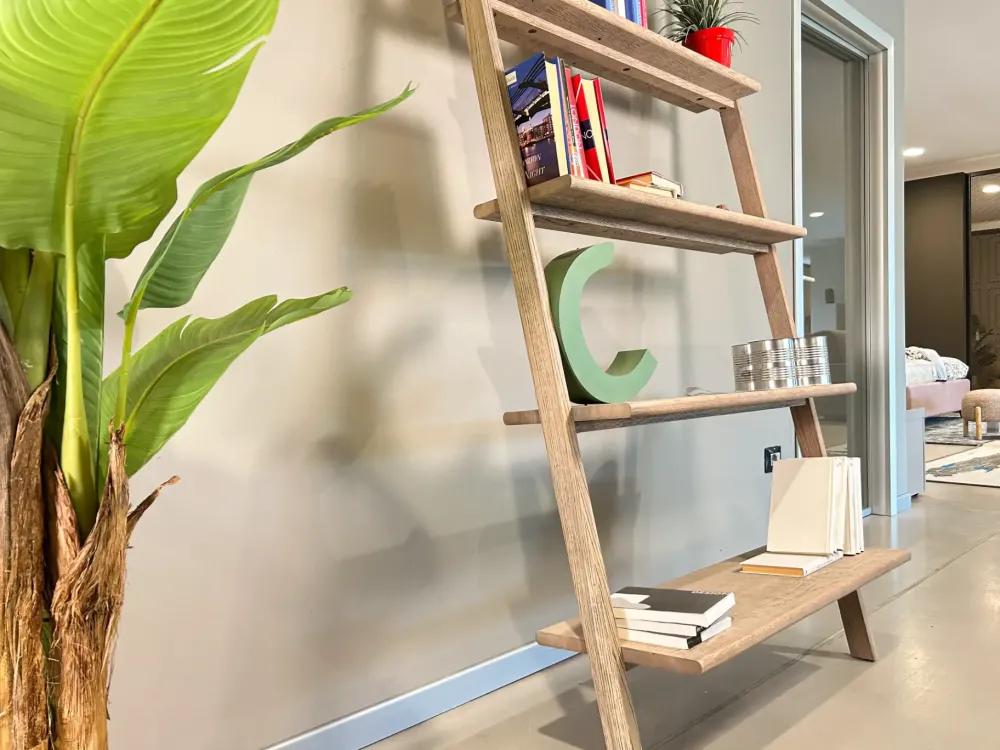 Questa libreria a scala elegante e funzionale è perfetta per arricchire il tuo spazio con stile. Realizzata in legno chiaro, offre una combinazione di praticità e design, ideale per esporre libri, piante e oggetti decorativi. Un’aggiunta moderna e versatile per ogni ambiente.