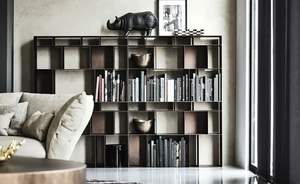 Uno stile unico e linee decise caratterizzano tutti i soggiorni Cattelan italia: la libreria nella fotografia sarà l’ideale per completare stanze in stile design.