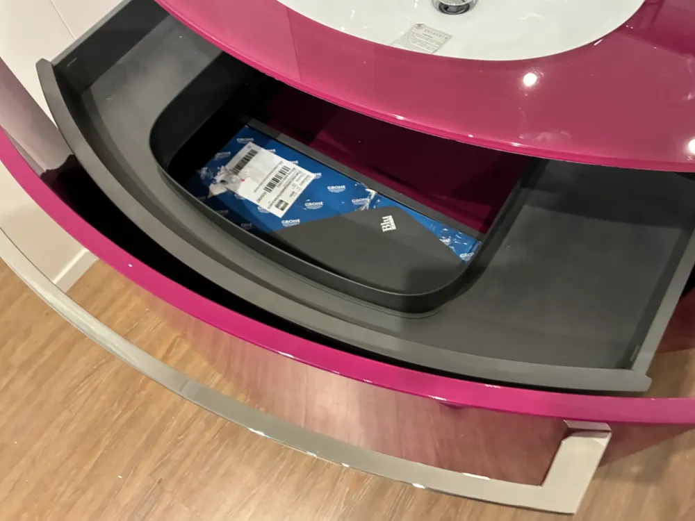 Bagno lux Scavolini di cm 120 prof max 51 laccato metallizzato lucido piano in vetro prodotto in sconto per rinnovo mostra non disponibile altri accessori