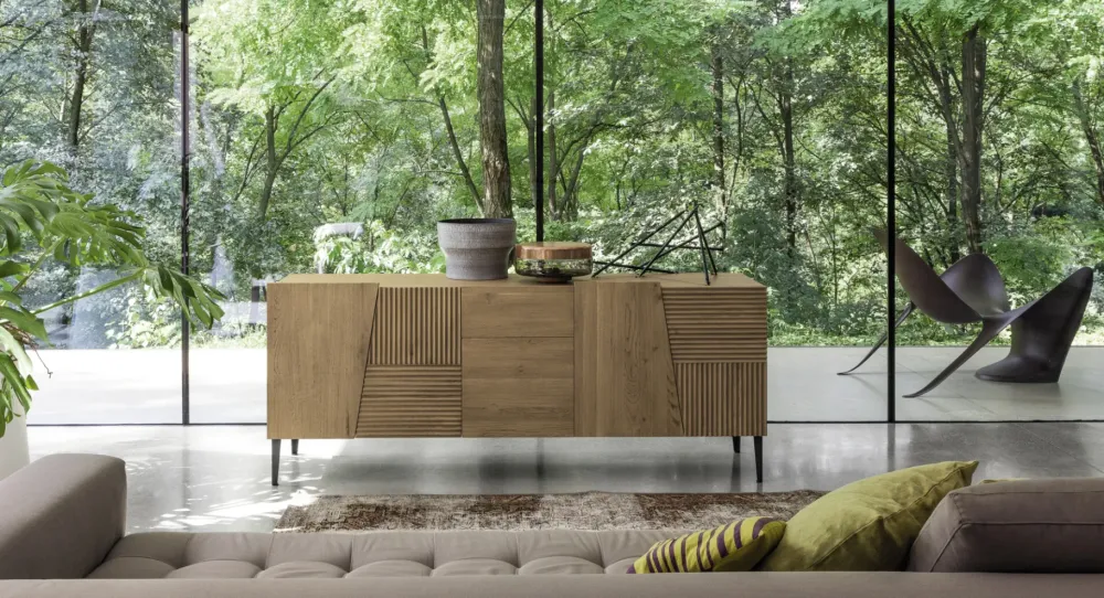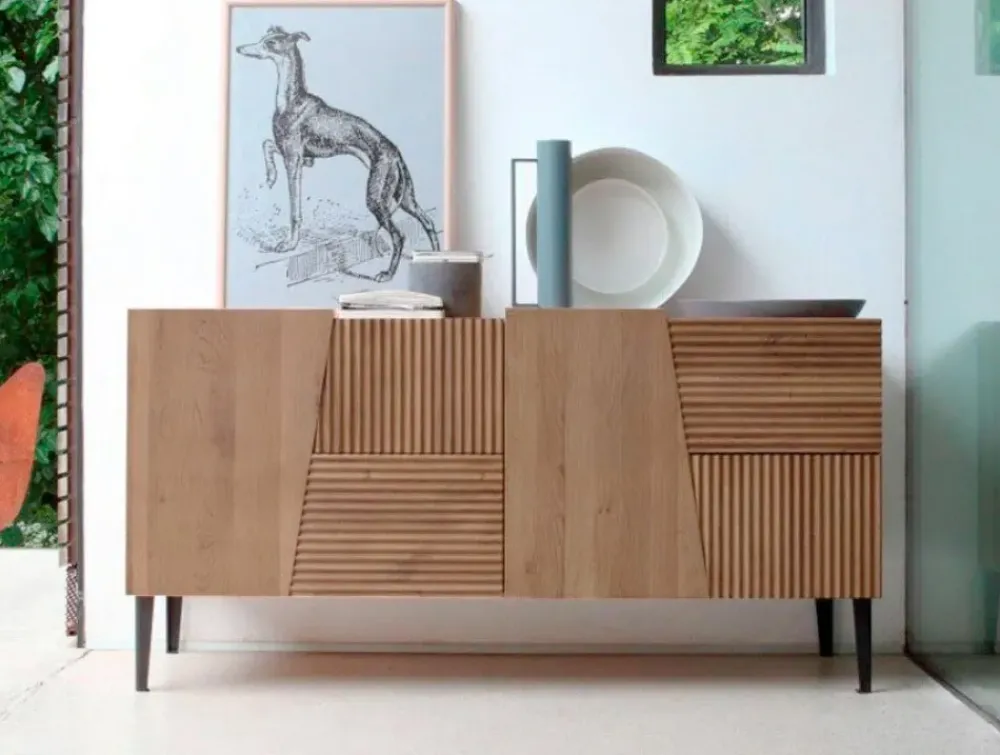 Linee decise e materiali durevoli: scopri la madia in legno qui presente e potrai impreziosire il soggiorno.