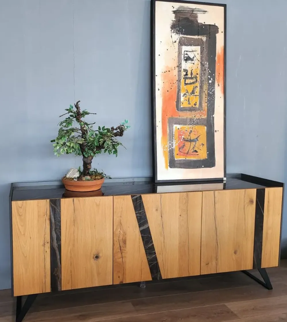 Con un mobile a terra come la madia in foto potrai impreziosire lo spazio rendendolo dinamico e operativo.