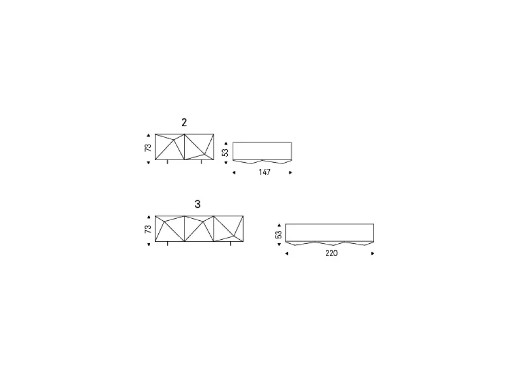 Dimensioni disponibili: 147x53x73h cm o 220x53x73h cm