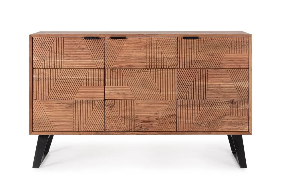 Credenza 3A Isar, spettacolare credenza in legno massello di acacia. Composto da 3 ante. Il frontale di questo mobile è tutto intarsiato a mano. Finitura acrilica protettiva. Maniglie in metallo.