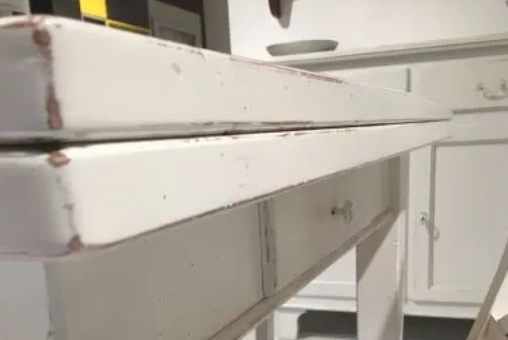 Piattaia 4 cassetti laccata bianco fondo noce L130 P18 H80
