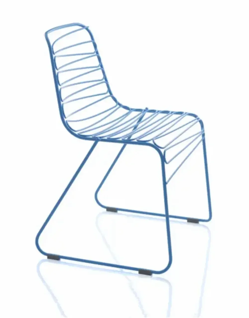 La Sedia Flux presenta una struttura in tondino di acciaio, è perfetta quindi per esterni e poi non va dimenticato nemmeno che si tratta di un modello impilabile.