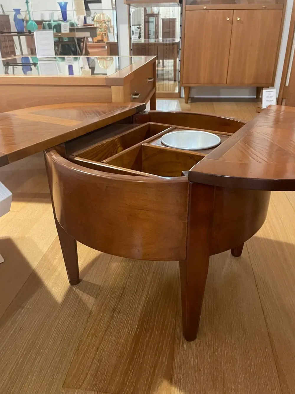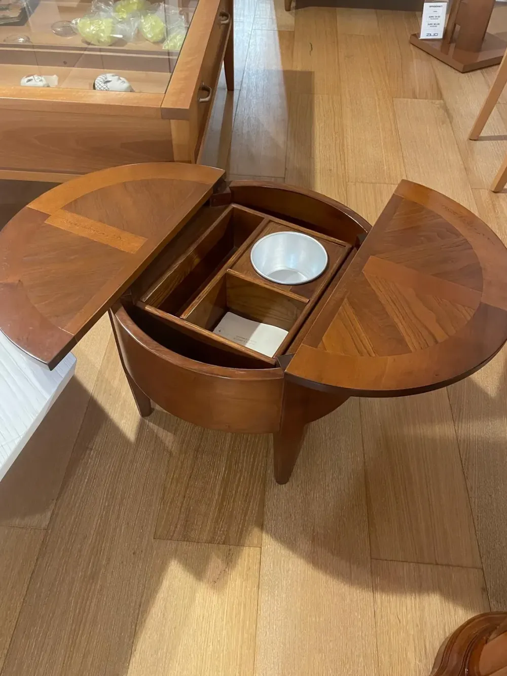 TAVOLINO DI LEGNO TONDO CON PIANO BAR APRIBILE