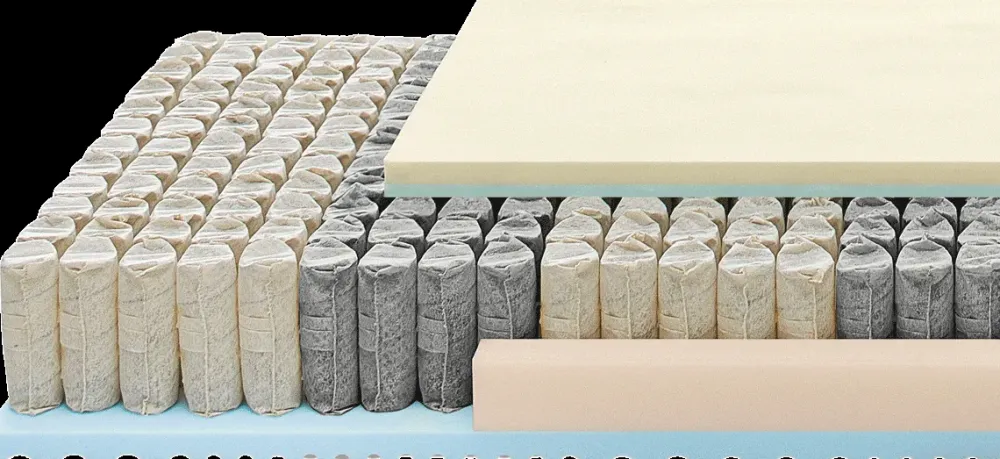 Tutta l’accoglienza della schiuma automodellante Memory Fresh, materiale composto da polioli vegetali ricavati da fonti rinnovabili, viene massimizzata da questo profilo di adeguato spessore e densità posto sul lato più performante della nuova struttura a 7 zone di portanza differenziate. Il profilo in Polilatex® HT, sagomato e massaggiante, è posto sul secondo lato della struttura e garantisce un adeguato isolamento dal molleggio, offrendo un sostegno più elastico. È una schiuma di nuova generazione e ad alte prestazioni realizzata con processi produttivi che le assicurano elevata porosità, basso peso specifico ed un comportamento elastico nel tempo. Resiste bene al calore e all umidità, principali cause di invecchiamento delle schiume comuni. A tutela di assenza di sostanze nocive a contatto con la pelle, Polilatex® HT è certificato Health Protection.