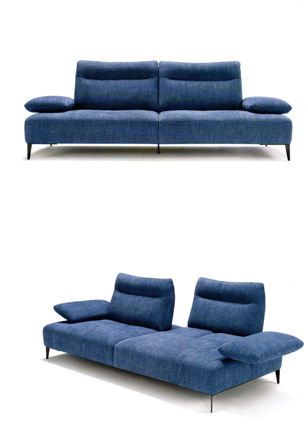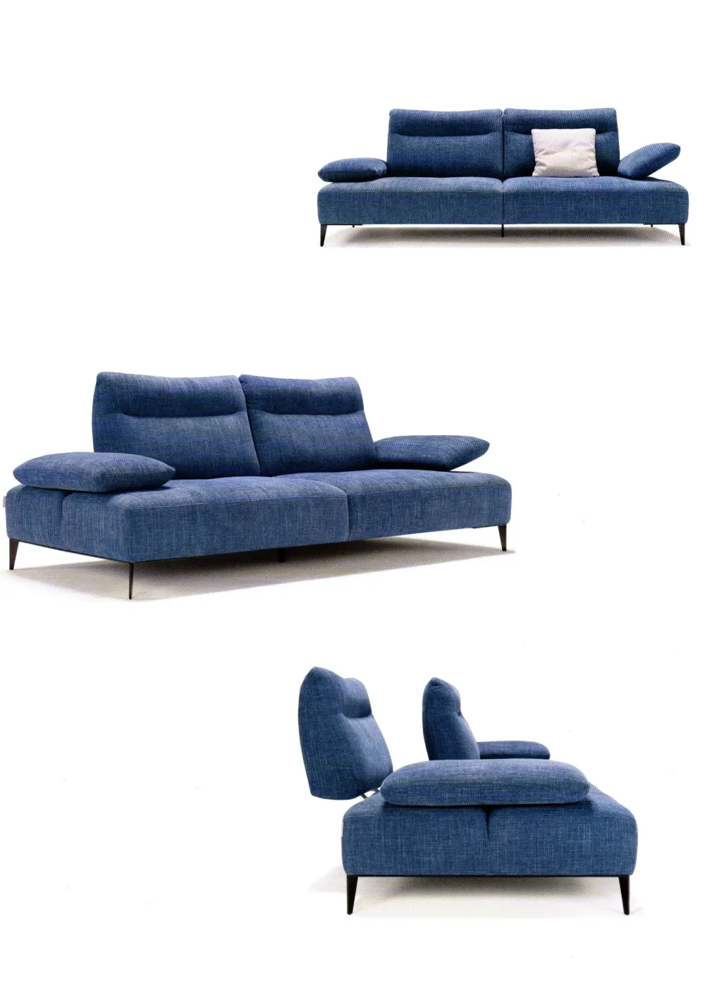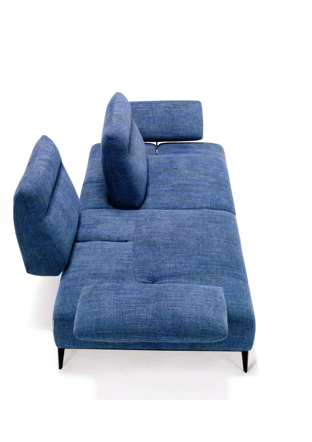 Divano mod. Wender 3 posti fisso, rivestimento in tessuto idrorepellente/smacchiabile. Meccanismo traslante per le spalliere e doppio meccanismo traslante e reclinabile per i braccioli.