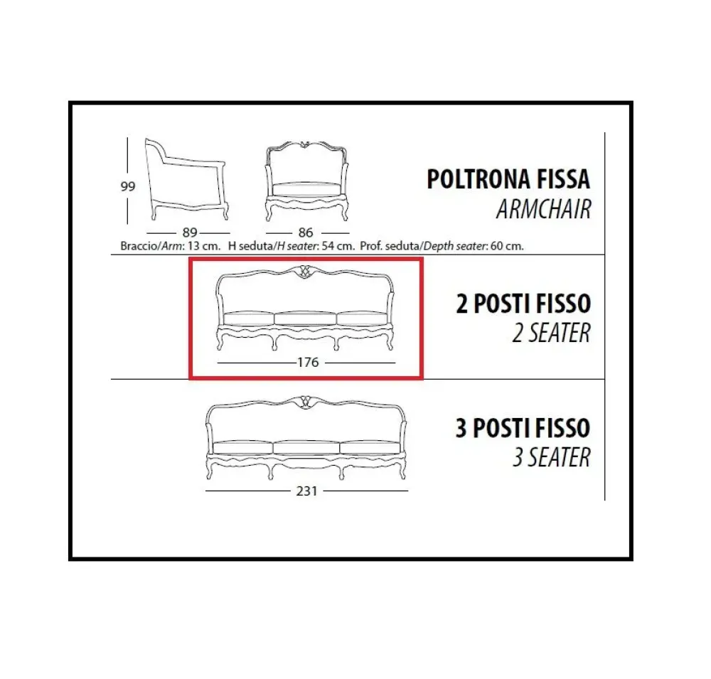Versioni: poltrona, divano 2 posti e divano 3 posti.