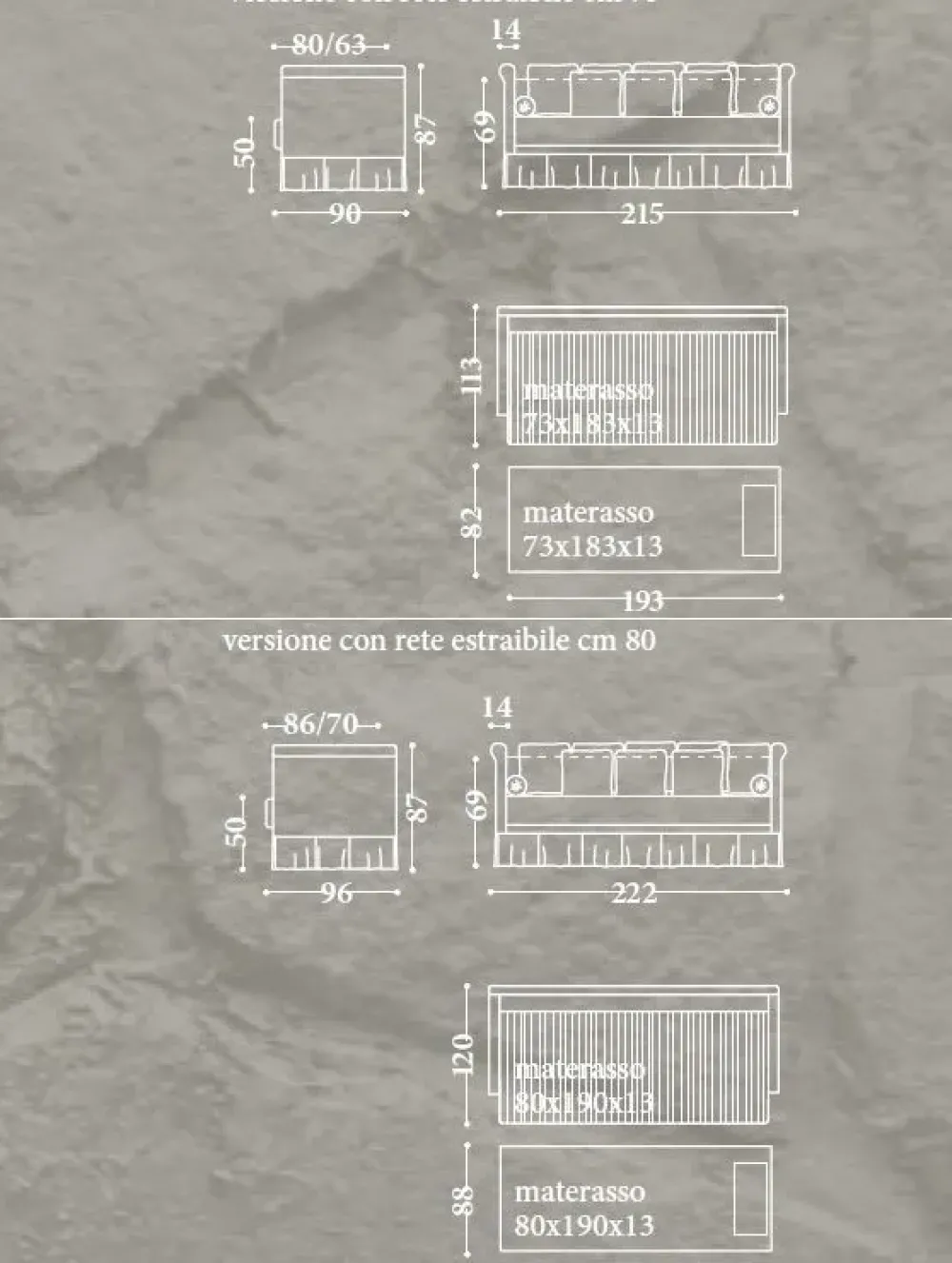 - I pezzi di arredo, tra cui anche gli imbottiti, non devono mai risultare ingombranti, prima di tutto per quanto concerne lo spazio che impegnano all’interno dei locali; proprio per questo è tanto importante valutare con cura anche le loro dimensioni: il modello di Divano letto presente in foto appartiene alla serie di imbotti della marca di lunghezza che varia da 201 a 225 cm ed è dunque ideale per un interno di svariate misure.