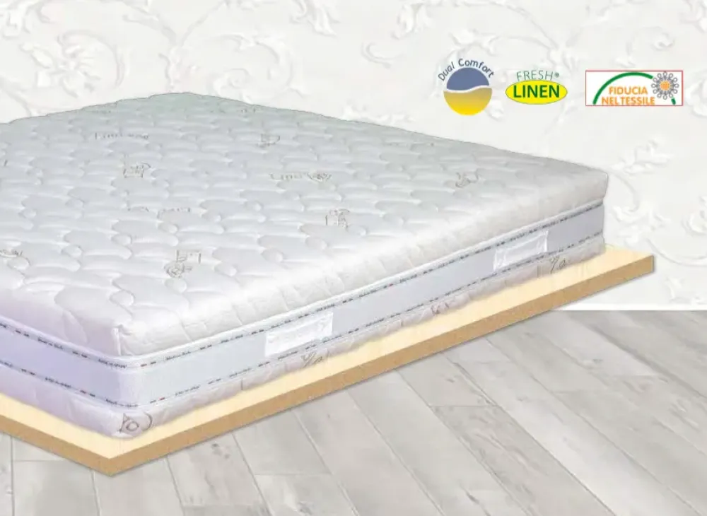 Materasso Matrimoniale da cm 160×190 oppure x 200 altezza 25 cm c.a., rivestimento materasso in Lino , oppure rivestimento in aloe bordato, interno poliuretano espanso in soia da kg 64 , lastra di memory foam altezza cm 5 , 2 cm di cocco per la circolazione sanguinea, molle insacchettate indipendenti, 7 zone differenziate , anti-acaro, indeformabile , ortopedico. altre misure disponibili , fino a fine scorte. Materasso con Garanzia 2 anni 4 Totale 6 anni.