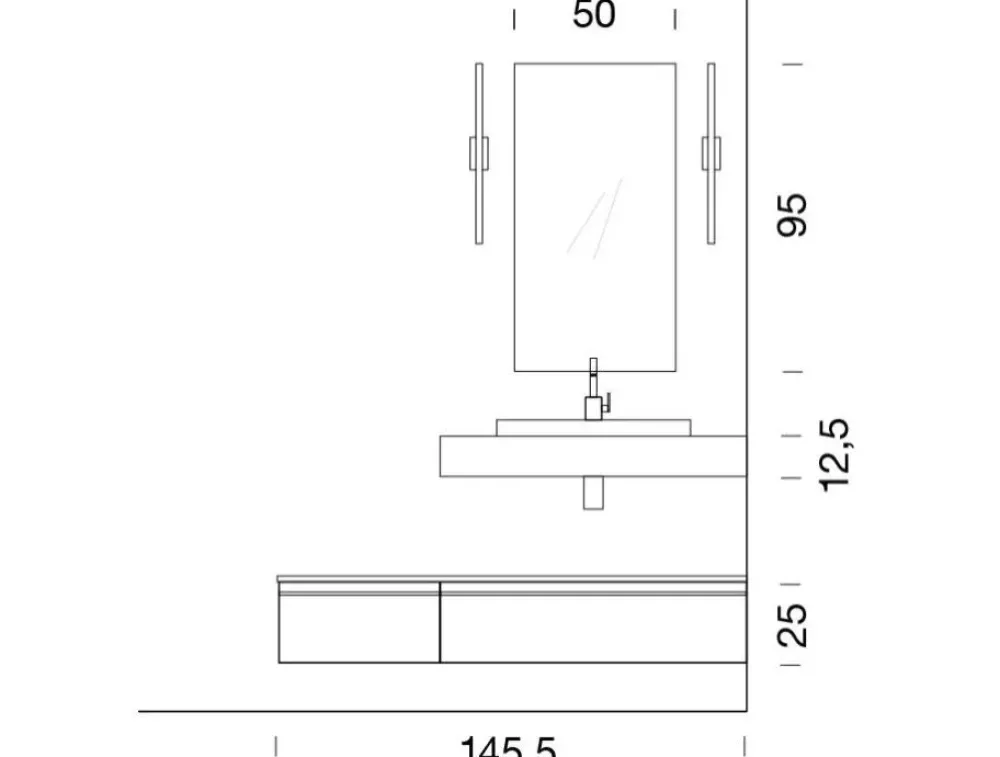 - Questa soluzione comprende uno specchio di raffinatezza ed eleganza, pensato apposta per connotare il valore estetico del locale e per agevolare le consuete pratiche di cura personale a cui esso è dedicato.