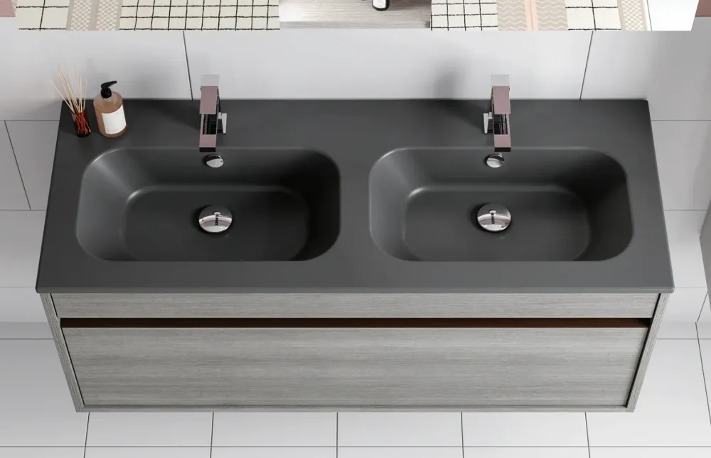 Per lui, per lei, per tutti: il doppio lavabo è sinonimo di comodità, soprattutto quando gli orari coincidono e il tempo stringe. Questo lavabo in ceramica è pratico, funzionale e moderno, pur mantenendo le caratteristiche di igiene classiche della ceramica.