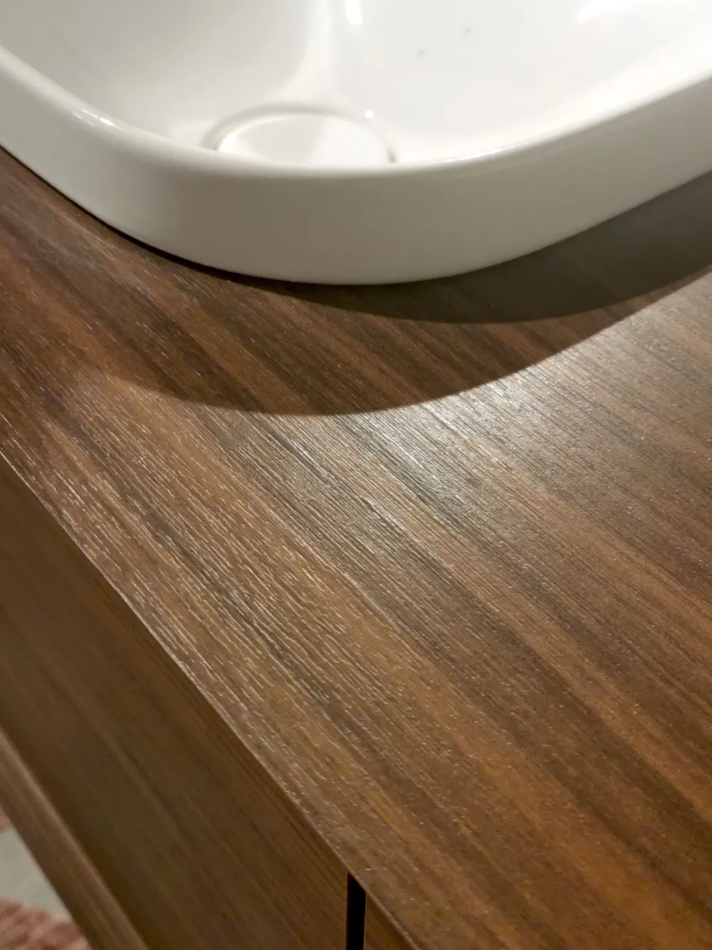 - Durante la scelta di un arredo per il bagno è imprescindibile tenere a mente le misure dell’ambiente da ultimare, ma altresì lo stile che meglio trasmette il tuo gusto personale. Le finiture e i colori saranno coordinati con quelli di rivestimenti e pavimentazioni. Questa proposta è disponibile in laminato.