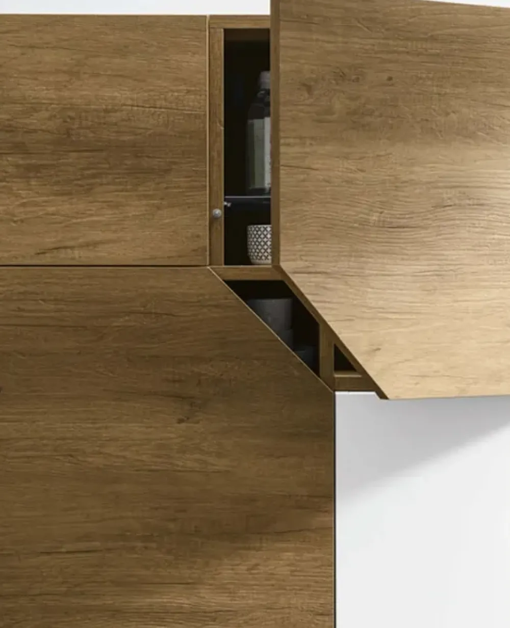 Tra diversi mobili e complementi con maniglia, questa proposta saprà arricchire il living valorizzando ogni angolo.
