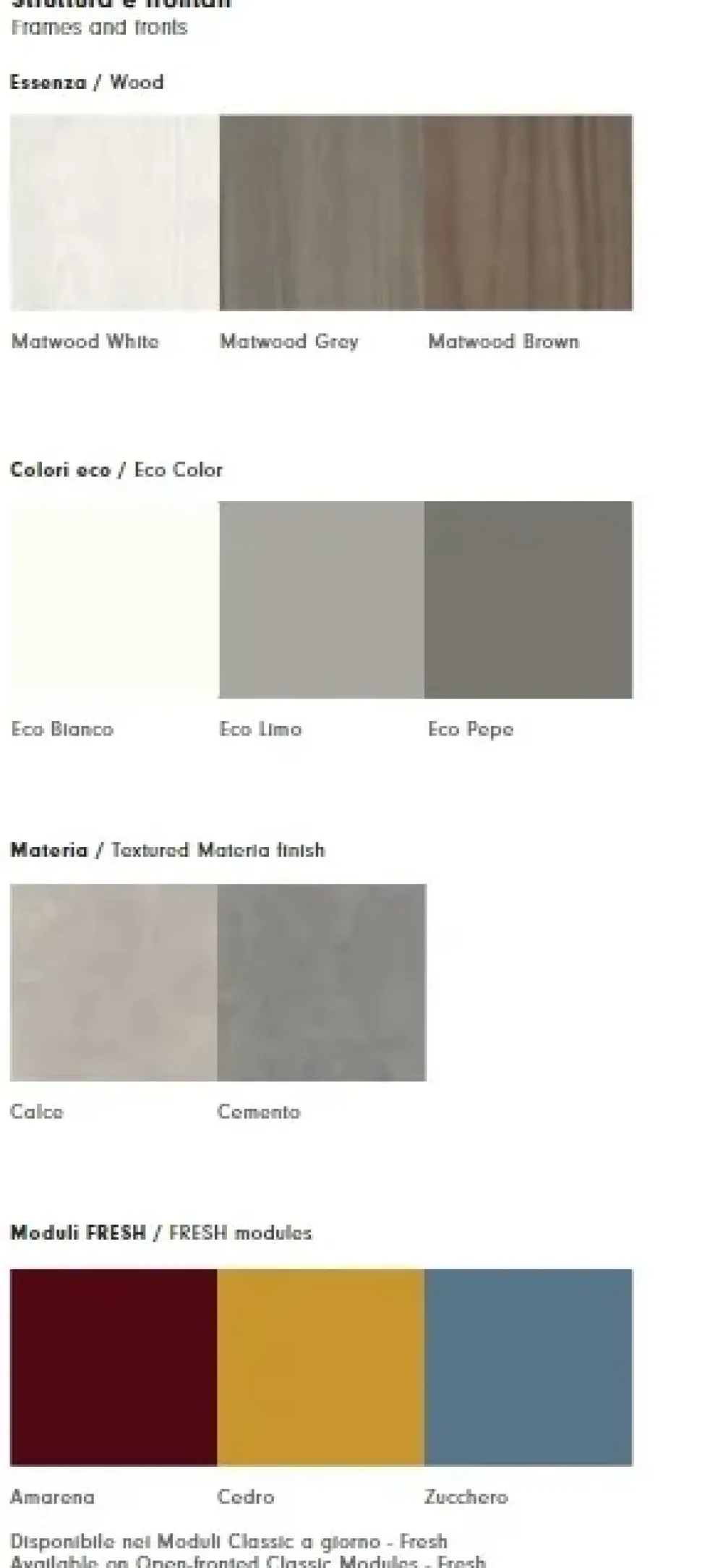 Versione proposta in Matwood Grey, eco limo, fresh zucchero