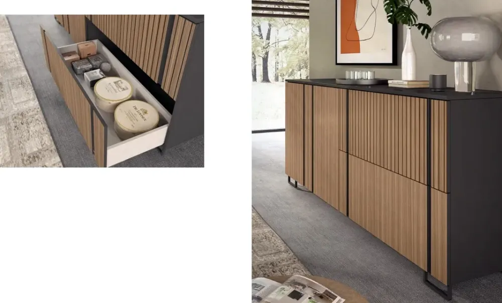 Per arricchire stanze design prediligi una madia dello stesso stile, come questo modello.