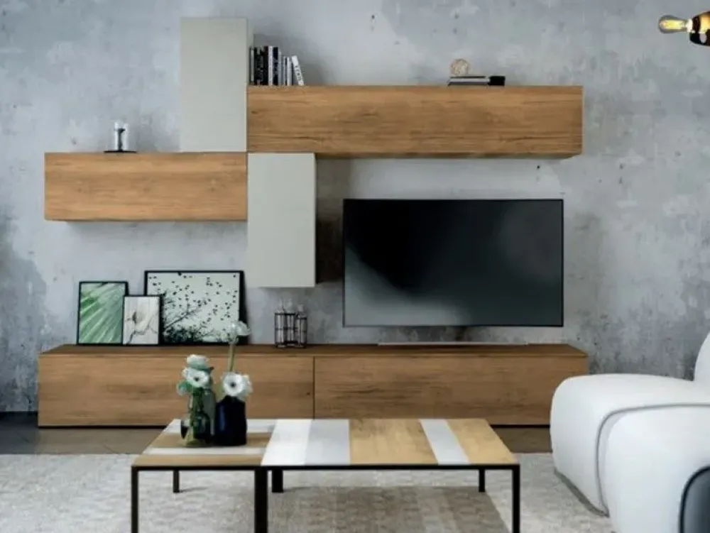 - Per il tuo soggiorno abbiamo pensato ad una collezione di mobili ed elementi accessori in laminato materico, come la parete attrezzata Skt15 in offerta, ideale per abbinare doti di praticità e design nel tuo soggiorno.