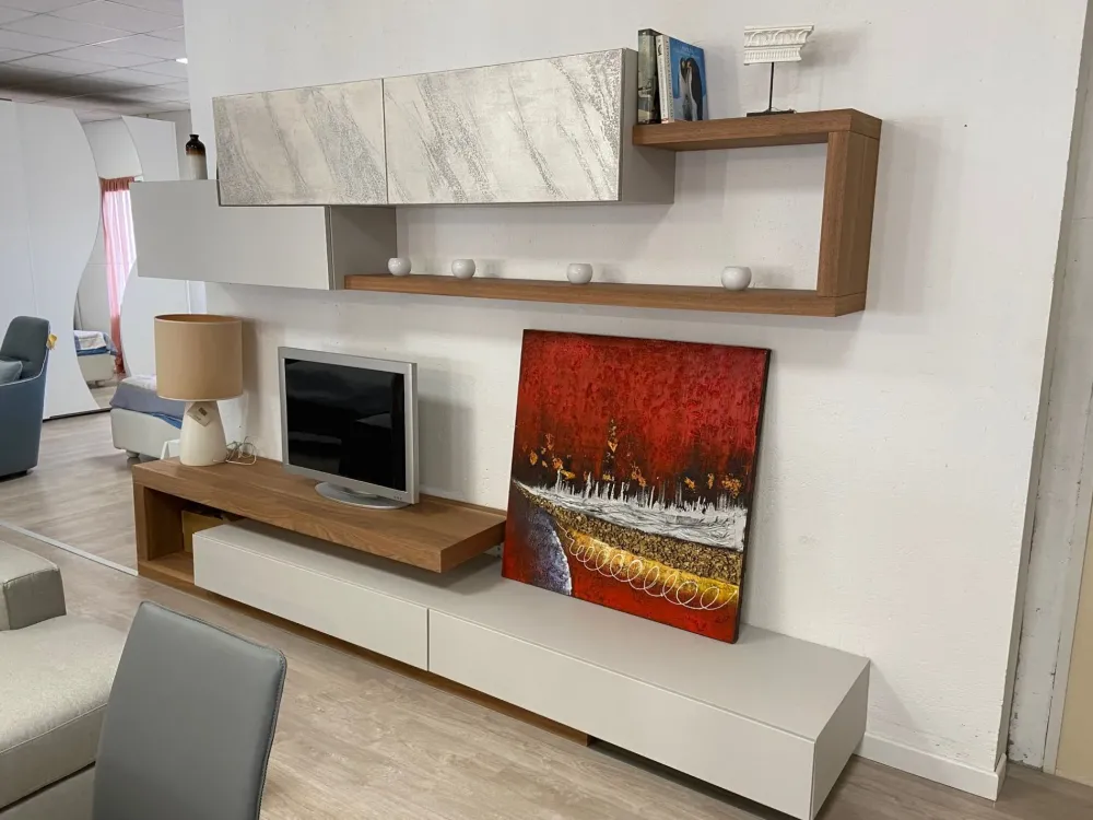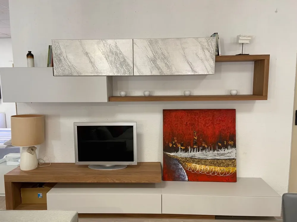 - Se desideri completare il living con un mobile a terra, scopri questa parete attrezzata in offerta: saprà rendere lo spazio operativo e pratico senza risultare d’intralcio.