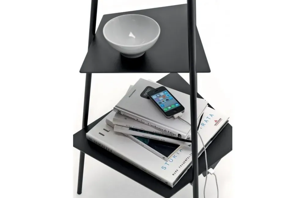 Lampada da terra in metallo verniciato nero opaco. Con paralume in tessuto nero di cotone accoppiato in pvc opalino. Con pratica presa USB 12 V per ricaricare cellulari o altro posizionata sotto il ripiano basso. Cavo elettrico rivestito in tessuto. Dimensioni cm 50 x 50 x 170 H. ( lampadina E27 -MAX 60 W esclusa ) Disponibile in esposizione, non è compreso il trasporto da considerarsi a parte. (mc 0,63 kg. 16)