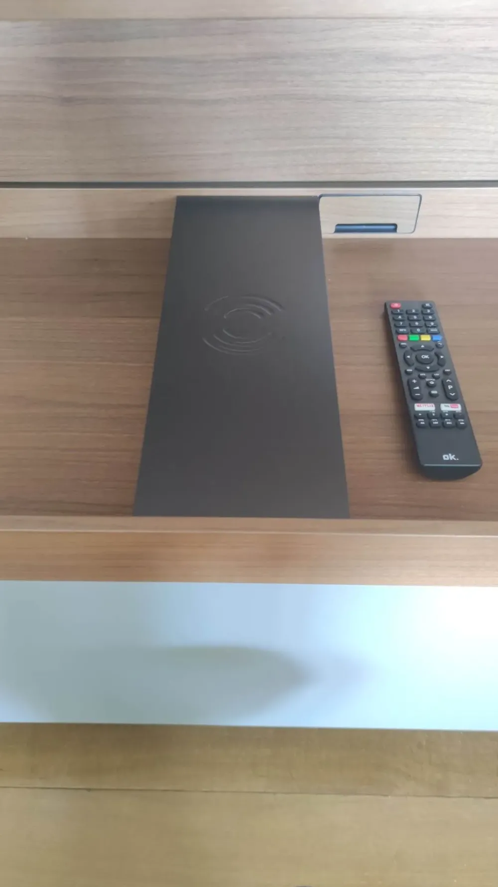 con cassetti, ripiani, mensolone, postazione ricarica wireless, e led