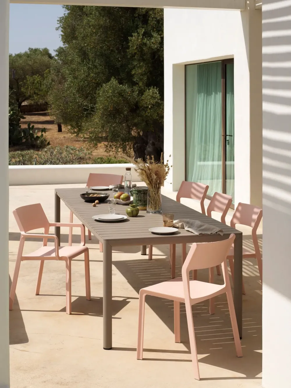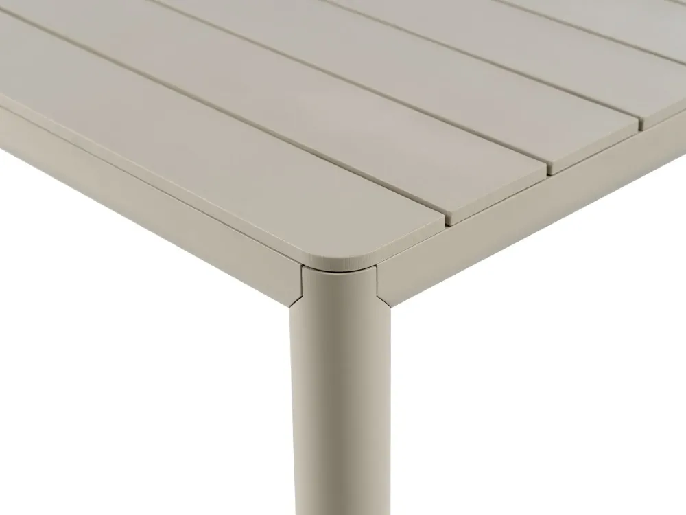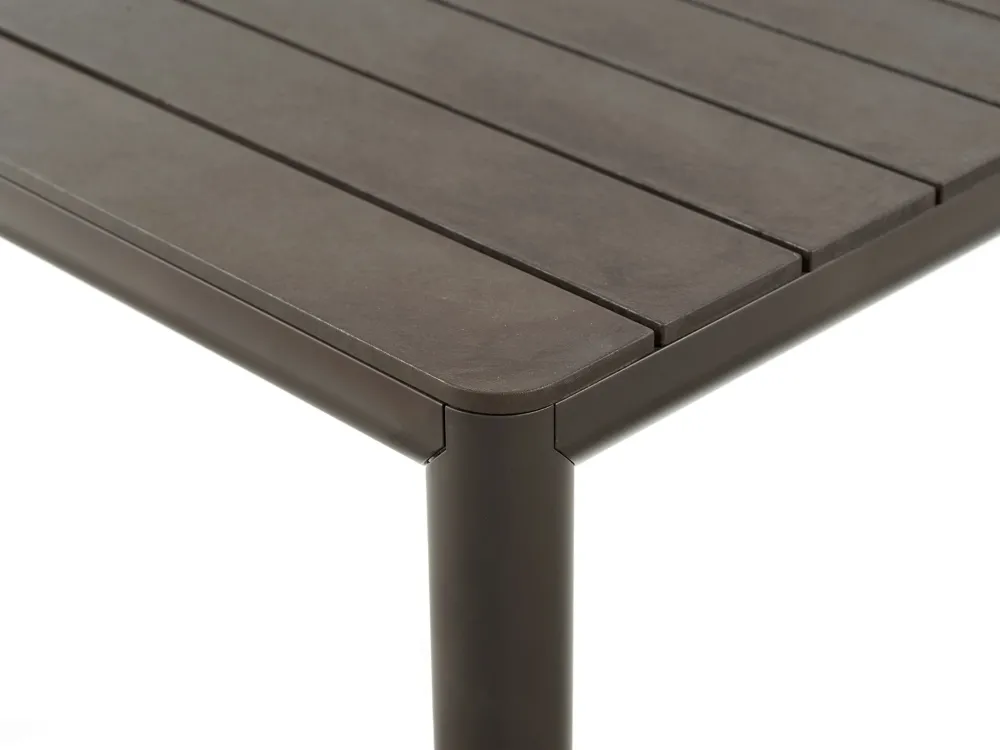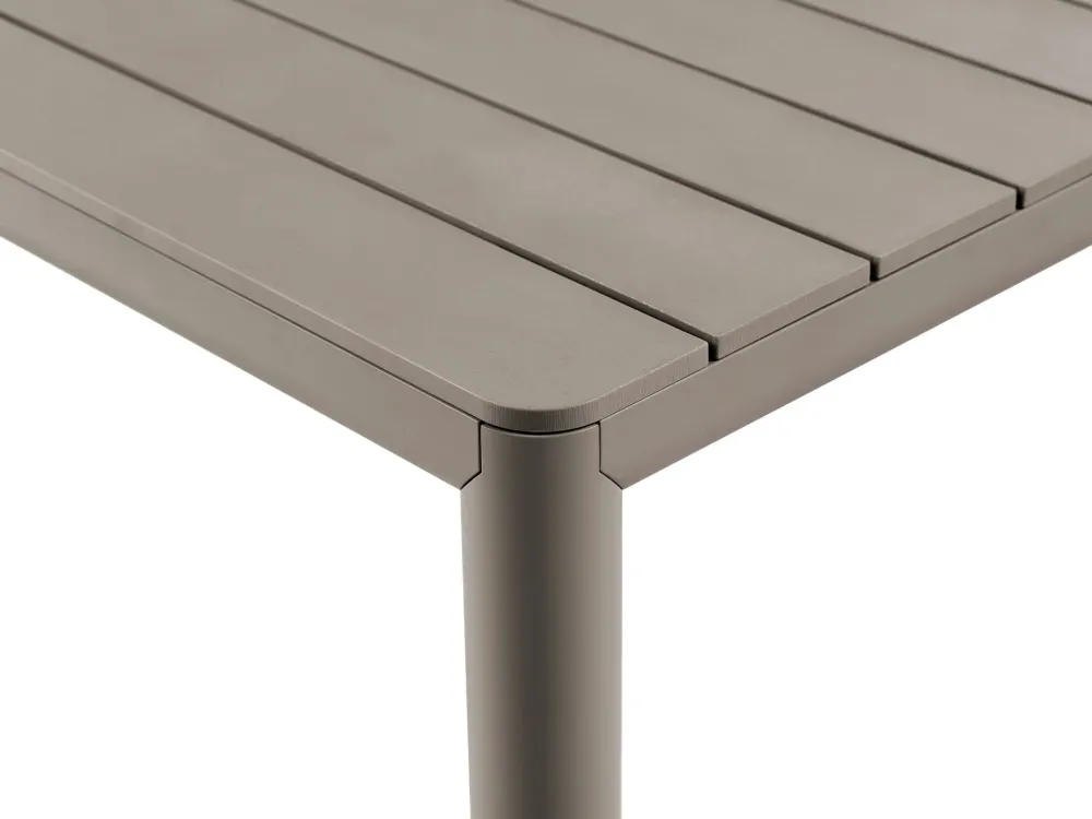 Tavolo da giardino Nardi Mod Tevere 211 x100 ext a 275 cm. struttura interamente in alluminio con piani in resina, si differenzia dal modello rio per una estetica più sinuosa e ricercata che lo eleva a prodotto di design. Disponibile nei colori antracite, terra, tortora e corda.